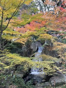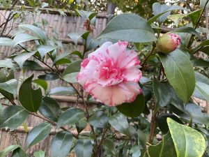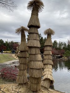 徳川園では毎年この日に、徳川家康ゆかりの門松が黒門に設らえられ、新年を迎える準備が始まります。ここに飾られる竹は削ぎの入った一本です。家康が唯一敗北した武田信玄に対して「次は斬るぞ」という想いが込められたものです。ちなみに名古屋城でも同じ門松が正門に設らえられています。松は左側に雄松(硬い)、右側に雌松(柔らかい)ですので、そっと触ってみると分かりますよ。これは作業する方から教えていただきました。そして梅は″梅結び″です。粋な工夫の跡に感激しました。慌ただしい師走ですが、時には立ち止まってじっくり対峙してみてはいかがでしょう!そして茶室には結び柳(園内の六角柳)が飾られ新年の準備は調えられています。