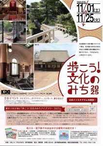 当会では、3階で両日ともパネル展示をし、17日は東寺町めぐりを実施しました。寺町巡りには30人以上の方の参加者があり、2チーム編成に分け見聞、散策と秋の町歩きを楽しんでいただきました。参加者の皆さんの笑顔が素敵でした。